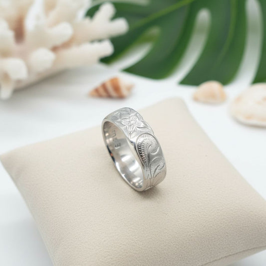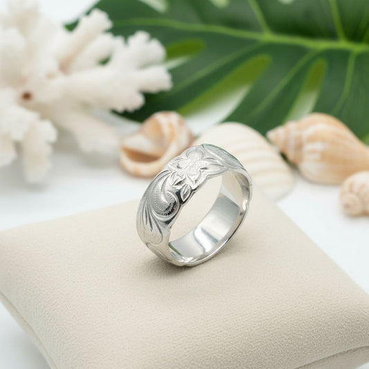 925 Sterling Silver 8mm Hawaiian Heirloom Flower Scroll Band Ring