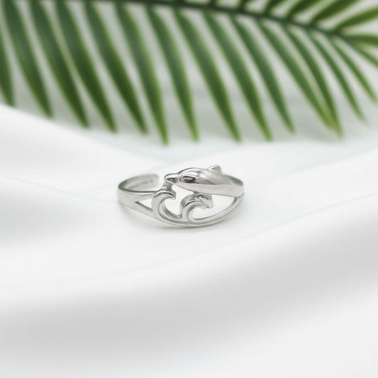 925 Sterling Silver Dolphin Wave Women's Adjustable Toe Cuff Ring