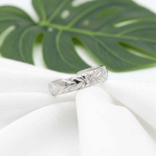 925 Sterling Silver 4mm Hawaiian Heirloom Flower Scroll Band Ring