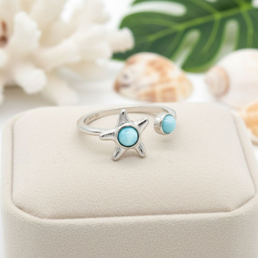 Adjustable Larimar Stone Spinner Starfish Ring - 925 Sterling Silver