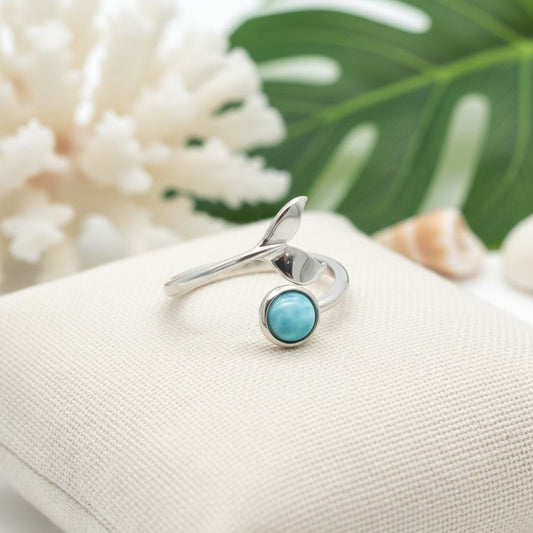 Adjustable Larimar Stone Whale Tail Ring - 925 Sterling Silver