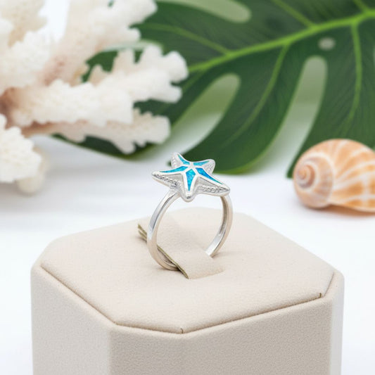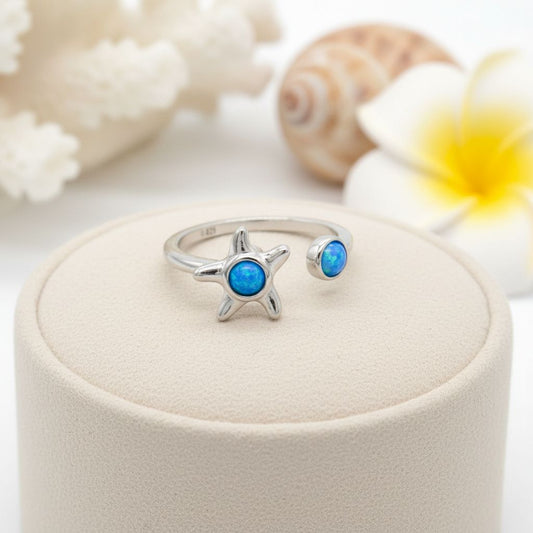 925 Sterling Silver Blue Opal Stone Hawaiian Ocean Starfish Ring