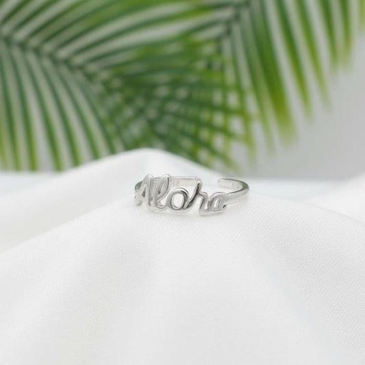 925 Sterling Silver "Aloha" Script Women's Adjustable Toe Cuff Ring