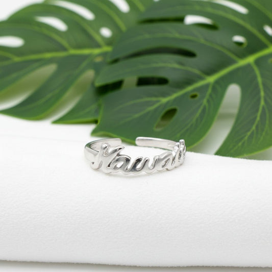 925 Sterling Silver "Hawaii" Script Women's Adjustable Toe Cuff Ring