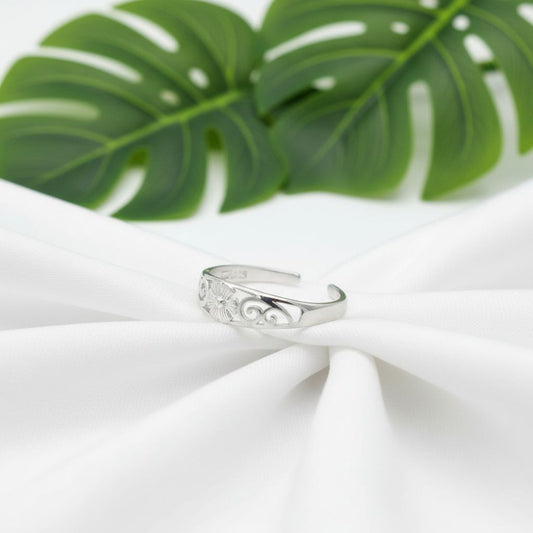 925 Sterling Silver Cutout Hawaiian Flower Women's Adjustable Toe Cuff Ring