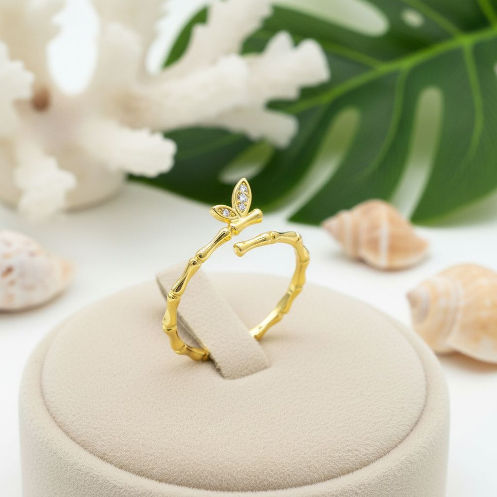 This adjustable CZ bamboo butterfly ring is crafted from 925 Sterling Silver, a metal known for its timeless beauty and lasting quality. With an adjustable fit, this ring is beautiful and versatile—perfect for every finger and every occasion.