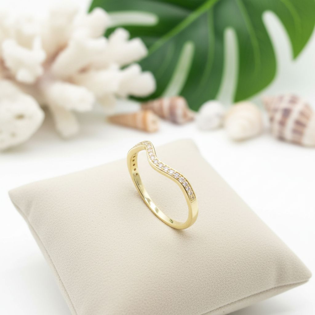 925 Sterling Silver Hawaiian Ocean CZ Line Wave Band Ring