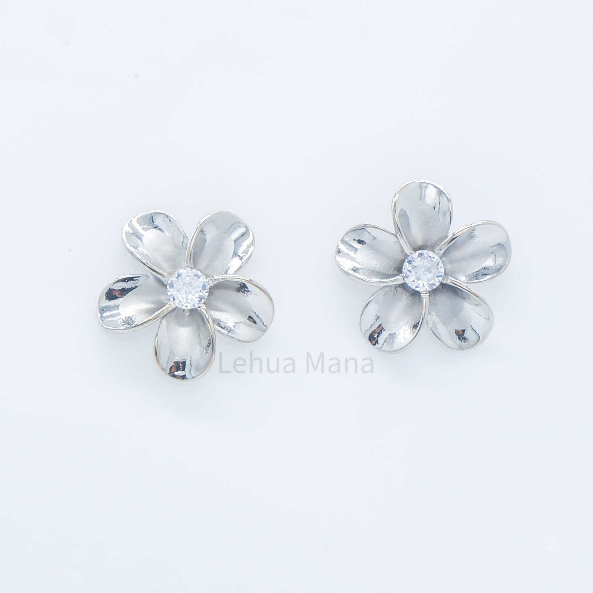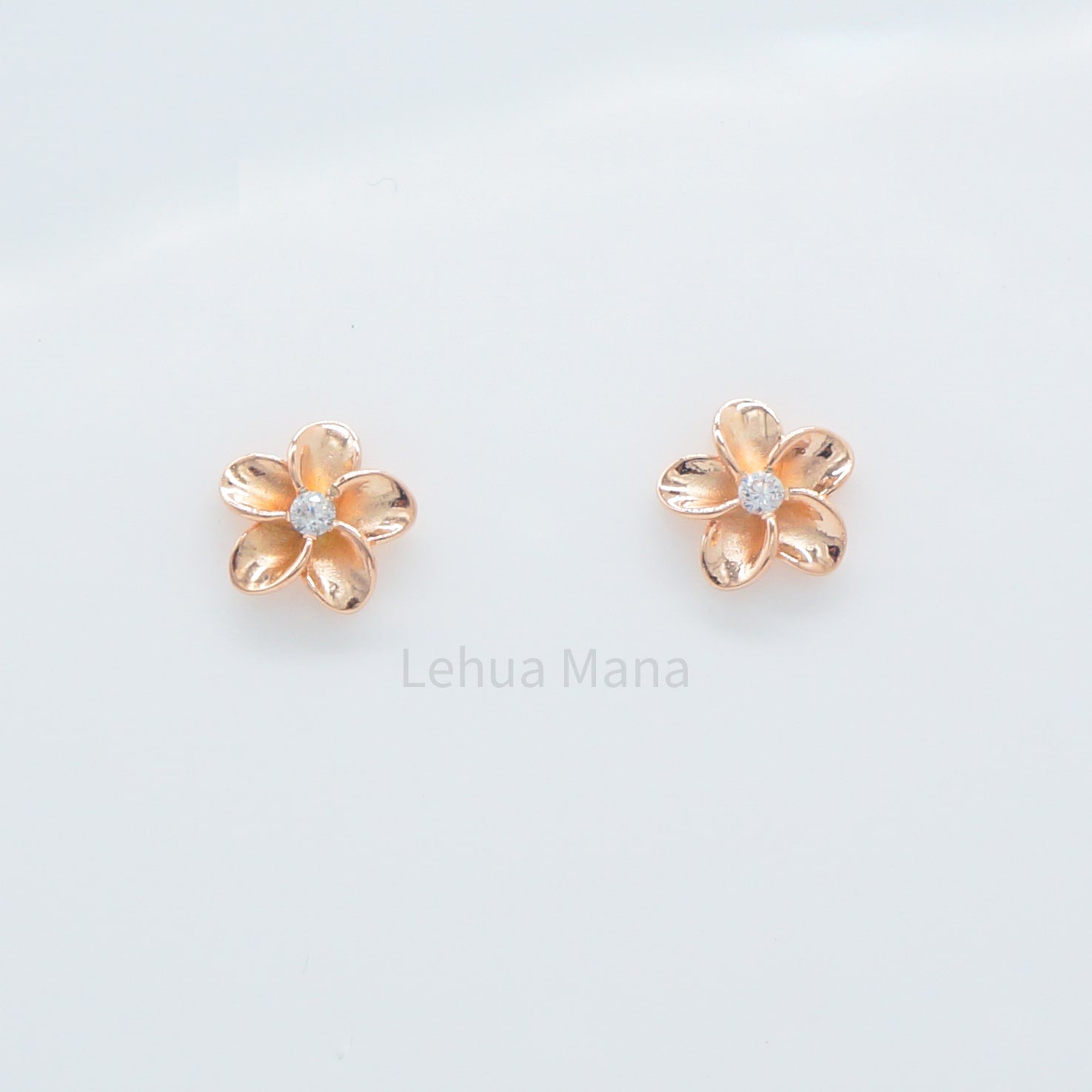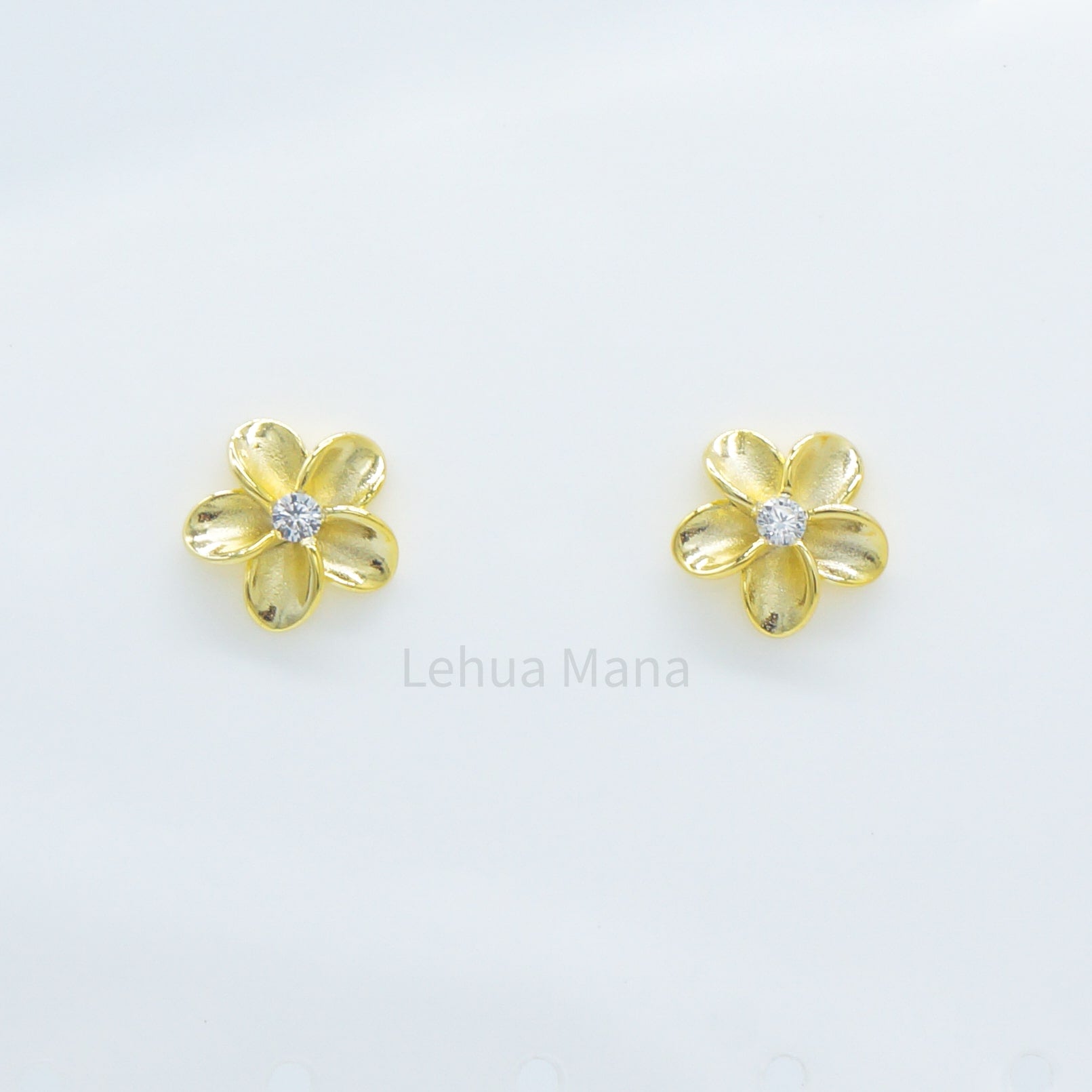 These charming studs feature a blooming plumeria flower, accented with a sparkling Cubic Zirconia stone at its center. In Hawaiian culture, the plumeria represents positivity, beauty, and new beginnings—adding a heartfelt touch to your everyday style.