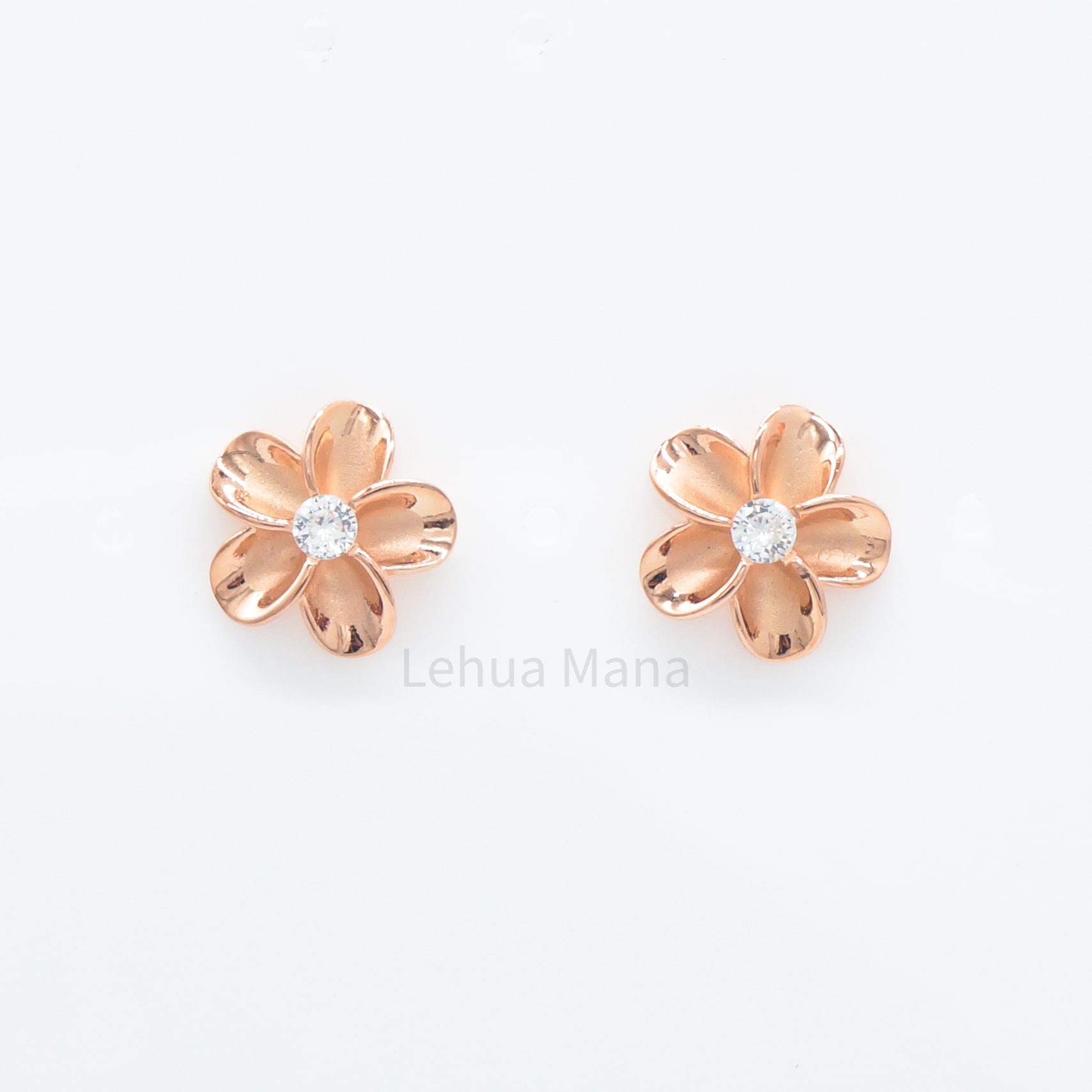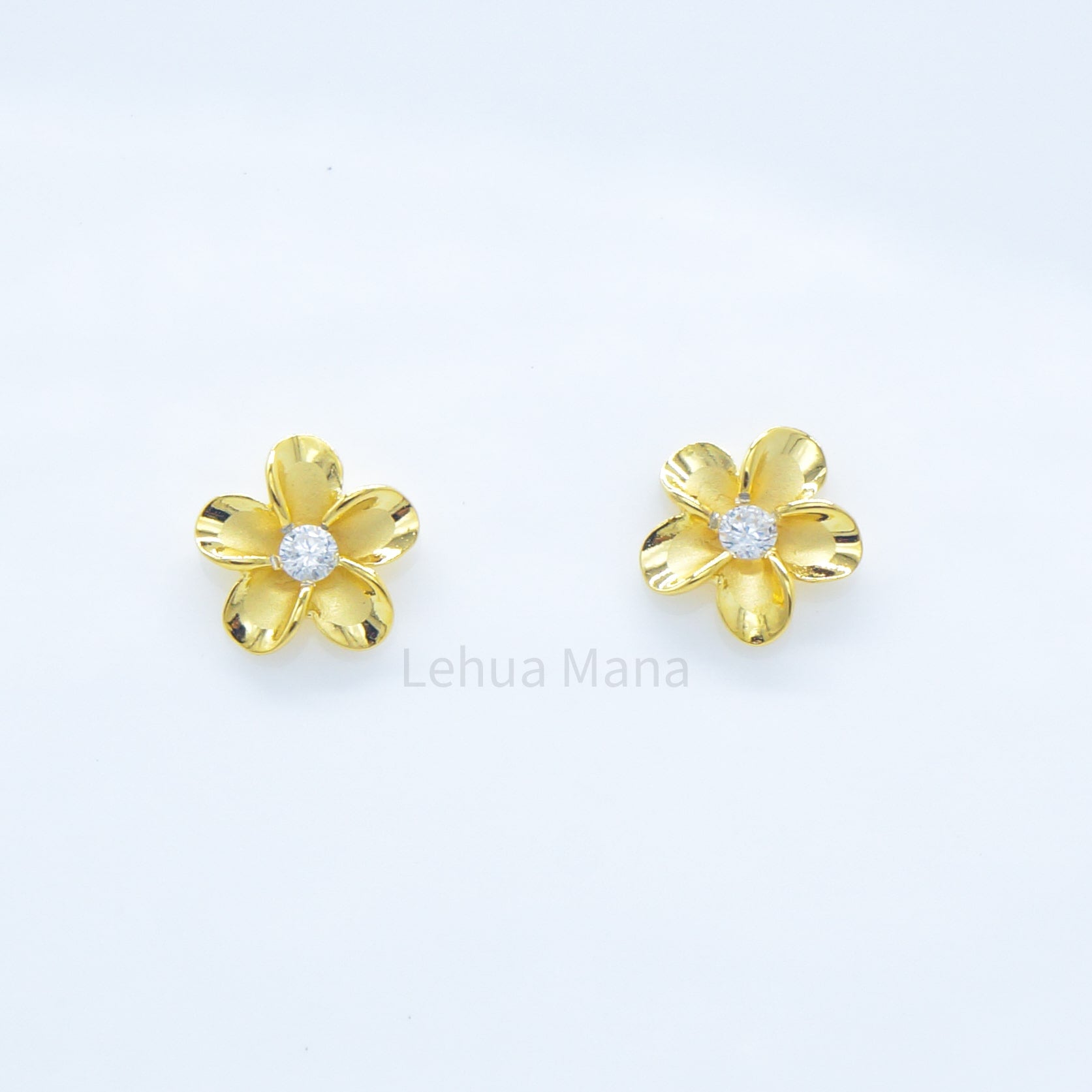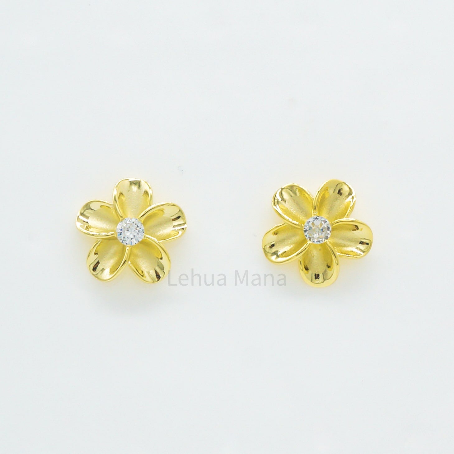 These charming studs feature a blooming plumeria flower, accented with a sparkling Cubic Zirconia stone at its center. In Hawaiian culture, the plumeria represents positivity, beauty, and new beginnings—adding a heartfelt touch to your everyday style.